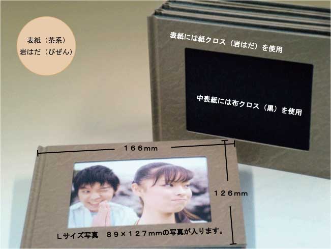 | 表紙は岩はだ(びでん)と岩はだ(かわら)の2種類から選んで頂けます。中貼りは共に黒クロスです。 |