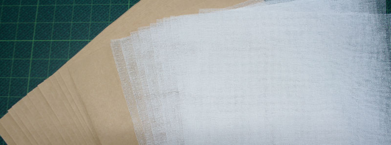 寒冷紗(裏打ちなし)・クラフト紙セット 寸法 297mm×210mm。 紙の目は297mmの方向に通ってます。(詳細参照)。 寒冷紗5枚入り。クラフト紙5枚入り。計10枚 背固めに使用します。 商品詳細ページはこちら。 |