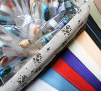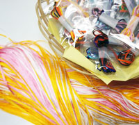 スピン・花布セット(各10色) スピン 長さ1000mm 幅2.5mm 10色 紫・赤・ブルー・ピンク・黄・グリーン・藤・オレンジ・白・紺。 花布 長さ150mm。 10色 赤・ゴールド・オレンジ×ホワイト・ホワイト・若草・赤×黄 ブルー×ベージュ・紫・黒。 商品詳細ページはこちら。 |