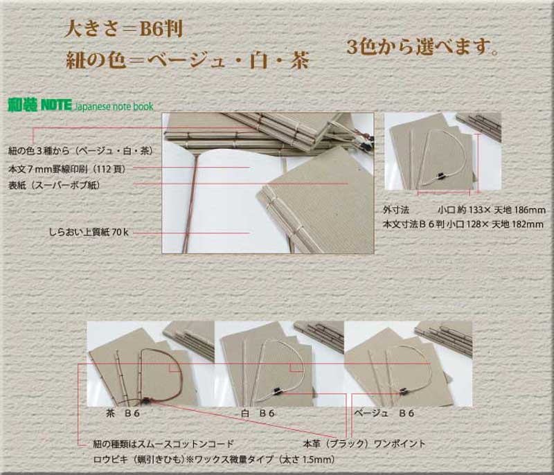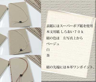 | 綴じ紐の色は(ベージュ)(白色)(茶色)の3種類から選んで頂けます。 | |||