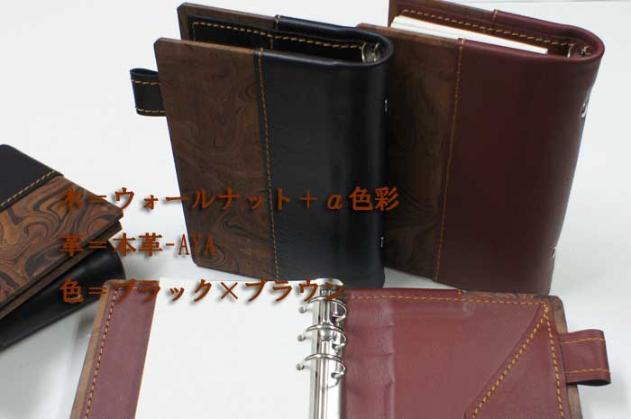 | 全てがハンドメイド商品です。 木の木目や革の質感、ウォールナット色彩の柄、同じ物は2冊とない商品です。 |